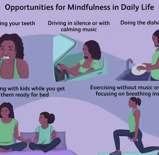 Nghỉ ngơi: Nếu bạn thấy mình đang bị cuốn theo những suy nghĩ của mình - dù là lo lắng, sợ hãi, lo âu hay hy vọng - hãy quan sát xem tâm trí bạn đã đi đâu, không phán xét và chỉ quay trở lại với hơi thở của mình. Đừng khắt khe với bản thân nếu điều này xảy ra; việc thực hành quay trở lại hơi thở và tập trung lại vào hiện tại là thực hành chánh niệm.